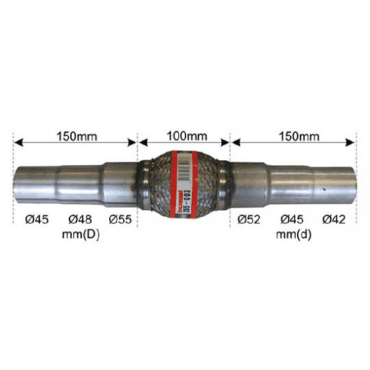 Durchmesser von [mm]: 42 | Durchmesser bis [mm]: 55 | Länge [mm]: 100 | Länge über Alles [mm]: 400 | Ergänzungsartikel/Ergänzende Info 2: mit Anschlussrohr | Spezifikation: Innerbraid