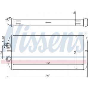 Kühlrippenmaterial: Aluminium | Netztiefe [mm]: 26 | Netzlänge [mm]: 290 | Netzbreite [mm]: 138 | Einlass-Ø [mm]: 19 | Auslass-Ø [mm]: 19 | Kühlerausführung: Kühlrippen gelötet | Material Wasserkasten (Kühler): Aluminium