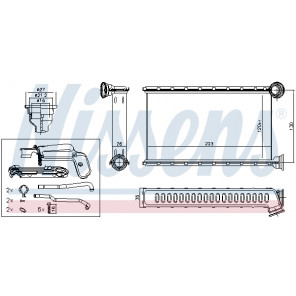 Kühlrippenmaterial: Aluminium | Netztiefe [mm]: 26 | Netzlänge [mm]: 160 | Netzbreite [mm]: 187 | Einlass-Ø [mm]: 22,3 | Auslass-Ø [mm]: 22,3 | Kühlerausführung: Kühlrippen gelötet | Ergänzungsartikel/Ergänzende Info: mit Rohrleitung | Material Wasserkasten (Kühler): Aluminium