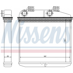 Kühlrippenmaterial: Aluminium | Netztiefe [mm]: 26 | Netzlänge [mm]: 160 | Netzbreite [mm]: 186 | Einlass-Ø [mm]: 19,2 | Auslass-Ø [mm]: 19,2 | Kühlerausführung: Kühlrippen gelötet | Material Wasserkasten (Kühler): Aluminium