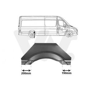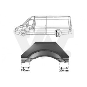 Einbauseite: hinten links | Blechart: Radlaufrand | Teilabschnitt: äusserer Teil | Reparaturblech: Reparaturblech | paarige Artikelnummer: 3078148