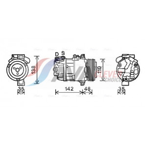 Riemenscheiben-Ø [mm]: 110 | Hubraum-Kompressor [ccm]: 140 | Kompressor-ID: 6SEU14A | Kompressoröl: PAG 46 | Ergänzungsartikel/Ergänzende Info 2: mit PAG-Kompressoröl | Einlass-Ø [mm]: 28 | Auslass-Ø [mm]: 15 | Anzahl der Rillen: 6 | Pol-Anzahl: 2 | Öl-Füllmenge [ml]: 100 | Kältemittel: R 134a | Spannung [V]: 12