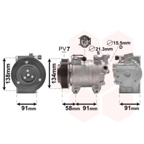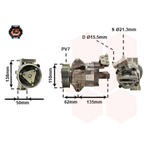 Herstellereinschränkung: Type Zexel | Kompressor-ID: DKS17D | Riemenscheiben-Ø [mm]: 134 | Spannung [V]: 12 | Einlass-Ø [mm]: 21,3 | Auslass-Ø [mm]: 15,5 | Öl-Füllmenge [ml]: 180 | Riemenscheiben: mit Keilrippenriemenscheibe | Anzahl der Rillen: 7 | Kompressoröl: PAG 46 | Kältemittel: R 134a | Befestigungsart: Vierpunktbefestigung | Steckergehäuseform: oval | teilbefüllt: 1