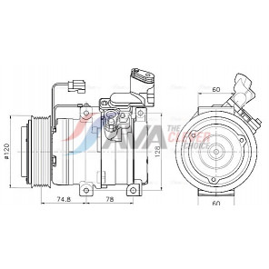 Riemenscheiben-Ø [mm]: 119 | Hubraum-Kompressor [ccm]: 150 | Kompressor-ID: DKV17DS | Kompressoröl: PAG 46 | Steckergehäuseform: rechteckig | Ergänzungsartikel/Ergänzende Info 2: mit PAG-Kompressoröl, mit Magnetkupplung | Einlass-Ø [mm]: 18 | Auslass-Ø [mm]: 16 | Anzahl der Rillen: 6 | Pol-Anzahl: 2 | Öl-Füllmenge [ml]: 150 | Steckerausführung: Female | Kältemittel: R 134a | Spannung [V]: 12