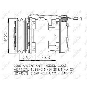 Herstellereinschränkung: SANDEN-EQUIVALENT | Ergänzungsartikel/Ergänzende Info 2: mit PAG-Kompressoröl | Riemenscheiben: mit Doppelriemenscheibe | Kompressor-ID: SD5H11 | Spannung [V]: 12 | Kompressoröl: PAG 100 | Anzahl der Rillen: 2 | Riemenscheiben-Ø [mm]: 125 | Öl-Füllmenge [ml]: 185 | Zylinderkopf-ID (Kompressor): C | Anschlussgewinde: 1\"-14 / 1\"-14 | Qualität: OE-EQUIVALENT | Steckergehäuseform: rechteckig