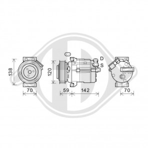 Kompressor-ID: Sanden TRSA09 | Kupplungs-ID: PV5 | Kompressoröl: PAG 46 | Riemenscheiben-Ø [mm]: 117