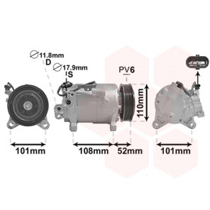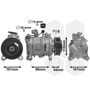 Herstellereinschränkung: Type Denso | Kompressor-ID: 6SEU14A | Riemenscheiben-Ø [mm]: 110 | Spannung [V]: 12 | Pol-Anzahl: 2 | Einlass-Ø [mm]: 28,4 | Auslass-Ø [mm]: 15,4 | Öl-Füllmenge [ml]: 110 | Hubraum-Kompressor [ccm]: 133 | Riemenscheiben: mit Keilrippenriemenscheibe | Anzahl der Rillen: 6 | Kompressoröl: PAG 46 | Kältemittel: R 134a | Ergänzungsartikel/Ergänzende Info 2: ohne Magnetkupplung | Befestigungsart: Vierpunktbefestigung | Steckergehäuseform: oval | teilbefüllt: 1