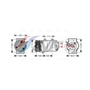 Riemenscheiben-Ø [mm]: 97 | Hubraum-Kompressor [ccm]: 86 | Kompressor-ID: SCROLL-90V | Kompressoröl: PAG 56 | Ergänzungsartikel/Ergänzende Info 2: mit PAG-Kompressoröl, mit Magnetkupplung | Einlass-Ø [mm]: 16,4 | Auslass-Ø [mm]: 13,2 | Anzahl der Rillen: 6 | Pol-Anzahl: 2 | Öl-Füllmenge [ml]: 120 | Kältemittel: R 134a | Spannung [V]: 12