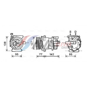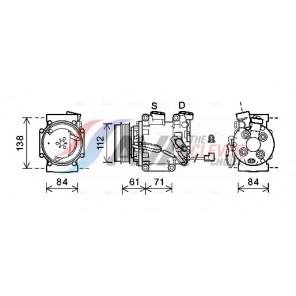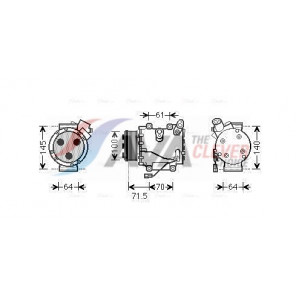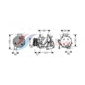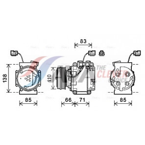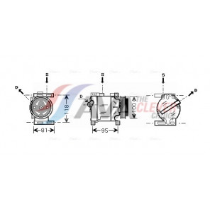 Riemenscheiben-Ø [mm]: 100 | Hubraum-Kompressor [ccm]: 66 | Kompressor-ID: SCS06 | Kompressoröl: PAG 46 | Ergänzungsartikel/Ergänzende Info 2: mit PAG-Kompressoröl, mit Magnetkupplung | Einlass-Ø [mm]: 18,3 | Auslass-Ø [mm]: 15,5 | Anzahl der Rillen: 5 | Pol-Anzahl: 2 | Öl-Füllmenge [ml]: 80 | Kältemittel: R 134a | Spannung [V]: 12