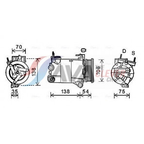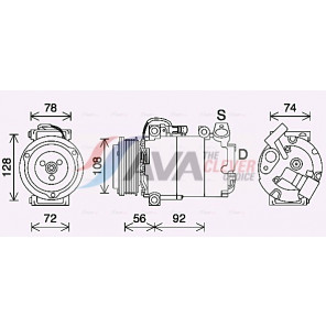 Riemenscheiben-Ø [mm]: 108 | Hubraum-Kompressor [ccm]: 130 | Kompressor-ID: 7VS16IC | Kompressoröl: PAG 46 YF | Steckergehäuseform: rechteckig | Ergänzungsartikel/Ergänzende Info 2: mit PAG-Kompressoröl, mit Magnetkupplung, mit Diode | Einlass-Ø [mm]: 18 | Auslass-Ø [mm]: 10 | Anzahl der Rillen: 6 | Pol-Anzahl: 1 | Öl-Füllmenge [ml]: 130 | Steckerausführung: Female | Kältemittel: R 1234yf | Spannung [V]: 12