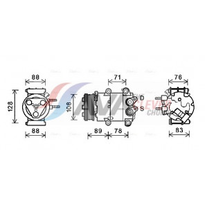 Riemenscheiben-Ø [mm]: 109 | Hubraum-Kompressor [ccm]: 150 | Kompressor-ID: VS-16 | Kompressoröl: PAG 46 | Steckergehäuseform: rechteckig | Ergänzungsartikel/Ergänzende Info 2: mit PAG-Kompressoröl, mit Magnetkupplung, mit Diode | Einlass-Ø [mm]: 18 | Auslass-Ø [mm]: 15 | Anzahl der Rillen: 6 | Pol-Anzahl: 2 | Öl-Füllmenge [ml]: 150 | Steckerausführung: Female | Kältemittel: R 134a | Spannung [V]: 12