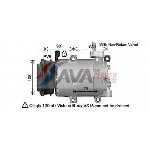 Riemenscheiben-Ø [mm]: 109 | Hubraum-Kompressor [ccm]: 150 | Kompressor-ID: VS-16 | Kompressoröl: PAG 46 | Steckergehäuseform: rechteckig | Ergänzungsartikel/Ergänzende Info 2: mit PAG-Kompressoröl, mit Magnetkupplung | Einlass-Ø [mm]: 21 | Auslass-Ø [mm]: 18 | Anzahl der Rillen: 6 | Pol-Anzahl: 2 | Öl-Füllmenge [ml]: 150 | Steckerausführung: Female | Kältemittel: R 134a | Spannung [V]: 12