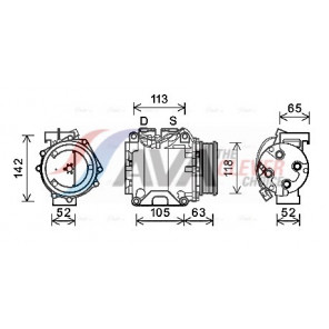 Riemenscheiben-Ø [mm]: 110 | Hubraum-Kompressor [ccm]: 86 | Kompressor-ID: TRSA09 | Kompressoröl: PAG 56 | Ergänzungsartikel/Ergänzende Info 2: mit PAG-Kompressoröl, mit Magnetkupplung | Einlass-Ø [mm]: 18,3 | Auslass-Ø [mm]: 15,5 | Anzahl der Rillen: 5 | Pol-Anzahl: 1 | Öl-Füllmenge [ml]: 120 | Kältemittel: R 134a | Spannung [V]: 12