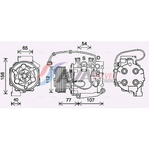 Riemenscheiben-Ø [mm]: 118 | Hubraum-Kompressor [ccm]: 106 | Kompressor-ID: HS110R | Kompressoröl: PAG 56 | Ergänzungsartikel/Ergänzende Info 2: mit PAG-Kompressoröl, mit Magnetkupplung | Einlass-Ø [mm]: 18,3 | Auslass-Ø [mm]: 15,5 | Anzahl der Rillen: 7 | Öl-Füllmenge [ml]: 150 | Kältemittel: R 134a | Spannung [V]: 12