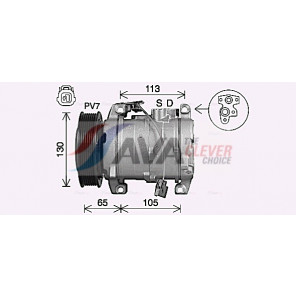 Riemenscheiben-Ø [mm]: 130 | Hubraum-Kompressor [ccm]: 200 | Kompressor-ID: 10S17C | Kompressoröl: PAG 46 | Steckergehäuseform: rechteckig | Ergänzungsartikel/Ergänzende Info 2: mit PAG-Kompressoröl, mit Magnetkupplung | Einlass-Ø [mm]: 18 | Auslass-Ø [mm]: 16 | Anzahl der Rillen: 7 | Pol-Anzahl: 1 | Öl-Füllmenge [ml]: 200 | Steckerausführung: Female | Kältemittel: R 134a | Spannung [V]: 12