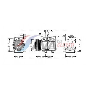 Riemenscheiben-Ø [mm]: 108 | Hubraum-Kompressor [ccm]: 130 | Kompressor-ID: 7VSC16IC | Kompressoröl: PAG 46 YF | Steckergehäuseform: rechteckig | Ergänzungsartikel/Ergänzende Info 2: mit PAG-Kompressoröl, mit Magnetkupplung | Einlass-Ø [mm]: 18 | Auslass-Ø [mm]: 10 | Anzahl der Rillen: 5 | Pol-Anzahl: 2 | Öl-Füllmenge [ml]: 130 | Steckerausführung: Female | Kältemittel: R 1234yf | Spannung [V]: 12