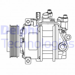Herstellereinschränkung: Delphi | Kompressor-ID: 7V16 | Kupplungs-ID: PV6 | Kompressoröl: PAG 46 | Riemenscheiben-Ø [mm]: 125