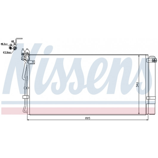 Netztiefe [mm]: 16 | Netzlänge [mm]: 695 | Netzbreite [mm]: 348 | chem. Eigenschaft: korrosionsbeständig | Einlass-Ø [mm]: 14,2 | Material: Aluminium | Ergänzungsartikel/Ergänzende Info: mit Stickstofffüllung | Auslass-Ø [mm]: 9,4 | Kältemittel: R 134a, R 1234yf | Ergänzungsartikel/Ergänzende Info 2: mit Trockner