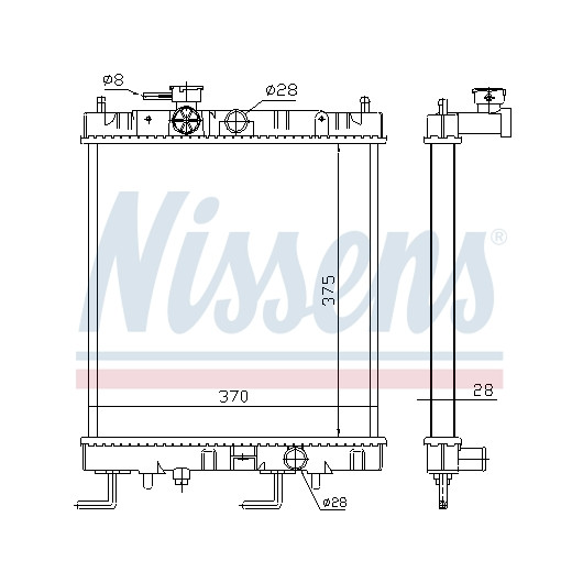 Kühlrippenmaterial: Aluminium | Netztiefe [mm]: 26 | Netzlänge [mm]: 375 | Netzbreite [mm]: 358 | Einlass-Ø [mm]: 28 | Auslass-Ø [mm]: 28 | Kühlerausführung: Kühlrippen gelötet | Ergänzungsartikel/Ergänzende Info 2: ohne Ausgleichsbehälter | Ergänzungsartikel/Ergänzende Info: mit Ölkühler, mit Dichtungen | Material Wasserkasten (Kühler): Kunststoff