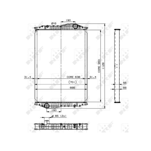 Ergänzungsartikel/Ergänzende Info 2: ohne Rahmen | Material: Aluminium | Netzlänge [mm]: 960 | Netzbreite [mm]: 638 | Netztiefe [mm]: 56 | Kühlerausführung: Kühlrippen gelötet