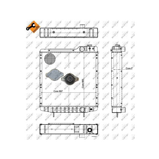 Ergänzungsartikel/Ergänzende Info 2: mit Verschlussdeckel, mit Kappe | Netzlänge [mm]: 697 | Netzbreite [mm]: 665 | Netztiefe [mm]: 73 | Kühlerausführung: Kühlrippen gelötet