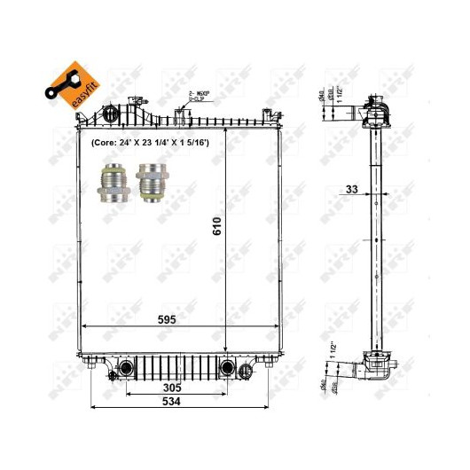 Material: Aluminium | Heizung/Kühlung: für Fahrzeuge mit kombiniertem Wasser-/Ölkühler | Netzlänge [mm]: 610 | Netzbreite [mm]: 595 | Netztiefe [mm]: 33 | Ergänzungsartikel/Ergänzende Info 2: mit Adapter | Kühlerausführung: Kühlrippen gelötet