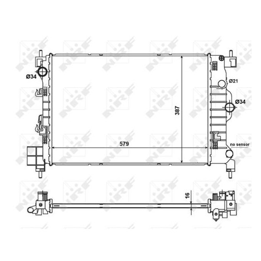 Ergänzungsartikel/Ergänzende Info 2: ohne Sensor | Material: Aluminium | Netzlänge [mm]: 580 | Netzbreite [mm]: 388 | Netztiefe [mm]: 16 | Kühlerausführung: Kühlrippen gelötet