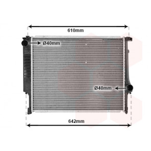 Kühlrippenmaterial: Aluminium | Kühlerausführung: Kühlrippen gelötet | Material Wasserkasten (Kühler): Kunststoff | Einlass-Ø [mm]: 42 | Auslass-Ø [mm]: 42 | Abstand der Befestigungsbohrungen [mm]: 173 | Netzlänge [mm]: 650 | Netzbreite [mm]: 428 | Netztiefe [mm]: 42