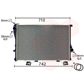 Kühlrippenmaterial: Aluminium | Kühlerausführung: Kühlrippen gelötet | Material Wasserkasten (Kühler): Kunststoff | Ergänzungsartikel/Ergänzende Info: mit Zubehör, mit Halter, mit Dichtungen | Anschlusstechnik: QF | Einlass-Ø 1 [mm]: 38 | Auslass-Ø 1 [mm]: 38 | Netzlänge [mm]: 650 | Netzbreite [mm]: 437 | Netztiefe [mm]: 32 | Qualität: IR PLUS