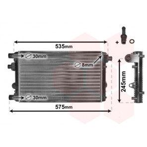 Kühlrippenmaterial: Aluminium | Kühlerausführung: Kühlrippen mechanisch gefügt | Material Wasserkasten (Kühler): Kunststoff | Einlass-Ø 1 [mm]: 30 | Auslass-Ø 1 [mm]: 30 | Netzlänge [mm]: 580 | Netzbreite [mm]: 305 | Netztiefe [mm]: 35