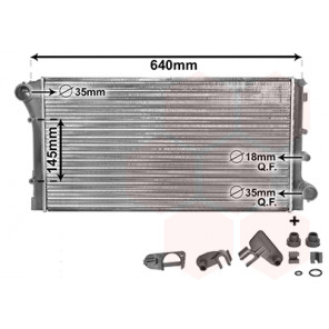 Kühlrippenmaterial: Aluminium | Kühlerausführung: Kühlrippen mechanisch gefügt | Material Wasserkasten (Kühler): Kunststoff | Ergänzungsartikel/Ergänzende Info: mit Zubehör | Anschlusstechnik: QF | Einlass-Ø 1 [mm]: 35 | Auslass-Ø 1 [mm]: 35 | Rohr-Ø [mm]: 18 | Netzlänge [mm]: 578 | Netzbreite [mm]: 315 | Netztiefe [mm]: 34 | Qualität: IR PLUS