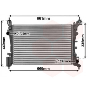 Kühlrippenmaterial: Aluminium | Kühlerausführung: Kühlrippen mechanisch gefügt | Material Wasserkasten (Kühler): Kunststoff | Einlass-Ø 1 [mm]: 35 | Auslass-Ø 1 [mm]: 35 | Netzlänge [mm]: 580 | Netzbreite [mm]: 316 | Netztiefe [mm]: 34