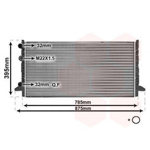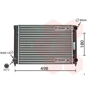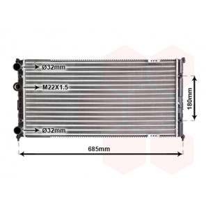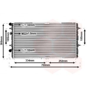 Kühlrippenmaterial: Aluminium | Kühlerausführung: Kühlrippen mechanisch gefügt | Material Wasserkasten (Kühler): Kunststoff | Gewindemaß: M22x1,5mm | Einlass-Ø [mm]: 32 | Auslass-Ø [mm]: 32 | Rohrdurchmesser von [mm]: 8 | Netzlänge [mm]: 720 | Netzbreite [mm]: 355 | Netztiefe [mm]: 32
