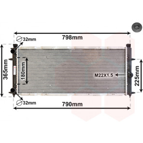 Kühlrippenmaterial: Aluminium | Kühlerausführung: Kühlrippen mechanisch gefügt | Material Wasserkasten (Kühler): Kunststoff | Gewindemaß: M22x1,5mm | Einlass-Ø 1 [mm]: 32 | Auslass-Ø 1 [mm]: 32 | Netzlänge [mm]: 630 | Netzbreite [mm]: 377 | Netztiefe [mm]: 34