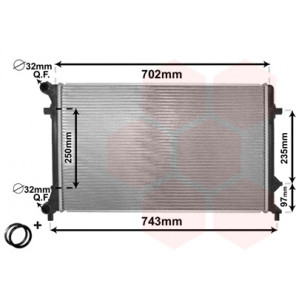 Kühlrippenmaterial: Aluminium | Kühlerausführung: Kühlrippen mechanisch gefügt | Material Wasserkasten (Kühler): Kunststoff | Ergänzungsartikel/Ergänzende Info: mit Zubehör | Gewindemaß: M22x1,5mm | Einlass-Ø 1 [mm]: 32 | Auslass-Ø 1 [mm]: 32 | Netzlänge [mm]: 720 | Netzbreite [mm]: 322 | Netztiefe [mm]: 33 | Qualität: IR PLUS