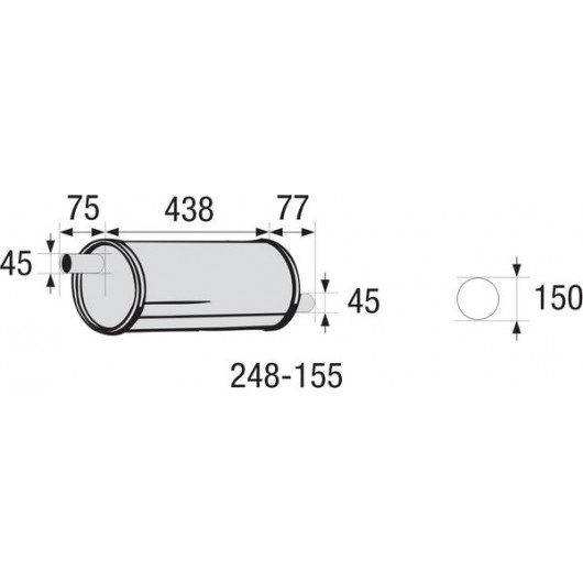 Durchmesser [mm]: 150 | Innendurchmesser 1 [mm]: 45 | Innendurchmesser 2 [mm]: 45 | Länge [mm]: 438 | Breite [mm]: 150 | Höhe [mm]: 150 | Zulassungsart: nicht ECE-geprüft