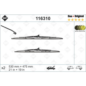 Einbauseite: vorne | Wischblattausführung: Bügelwischblatt, Wischblatt mit optischer Verschleißwarnung | Länge 1 [mm]: 530 | Länge 2 [mm]: 475 | Länge 1 [Zoll]: 21 | Länge 2 [Zoll]: 19 | passender Adapter: T2